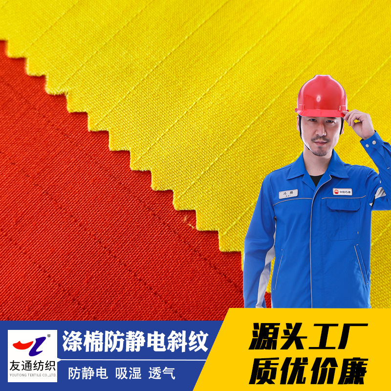 CVC防静电厚斜纹友通纺织 厂家直销工作服面料cvc防静电工装布料