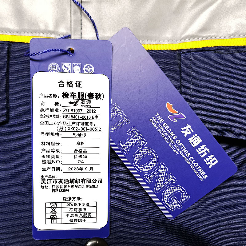 友通纺织 春秋季防静电劳保工作服 正面蓝背面黄蓝检