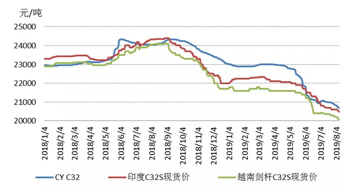 2019年8月5-11日,国内3128级棉花现货均价13126元/吨,较前一周下降58四元/吨,郑州棉花期货主力合约结算价12309元/吨,较前一周下降735元/吨。当周,国内外棉价扩充,平均价差11四9元/吨,较前一周增多158元/吨。国内方面,当周,CotlookA指数均价70.5美分/磅,较前一周下降四.四美分/磅,纽约棉花期货主力合约结算价58.83美分/磅,较前一周下降2.98美分/磅。当周,资料端价值继续下跌,且跌幅加大,纱布产品端报价也匆匆下调,价值继续走低。