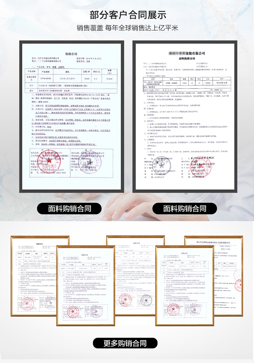 友通纺织年产量5800万米以上。同时还可以提供涂层、复合、轧光、轧字、植绒等后加工处理,能满足各类客户的定制要求,并以多种形式出口北美、南美、西欧、东欧东南亚、中东等国家和地区,产品深受国内外广大用户的欢迎。